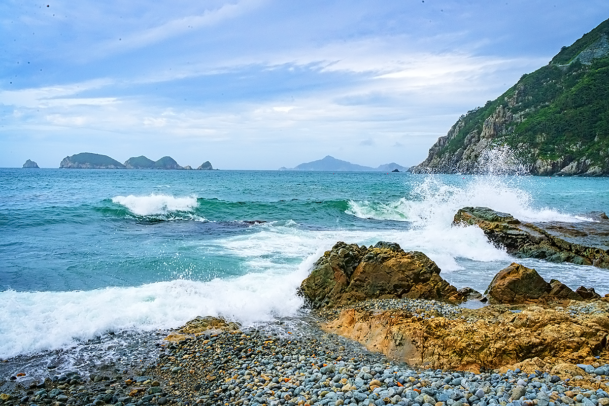쪽빛 물결이 몽돌 위로 부드럽게 스쳐 지나갈 때마다