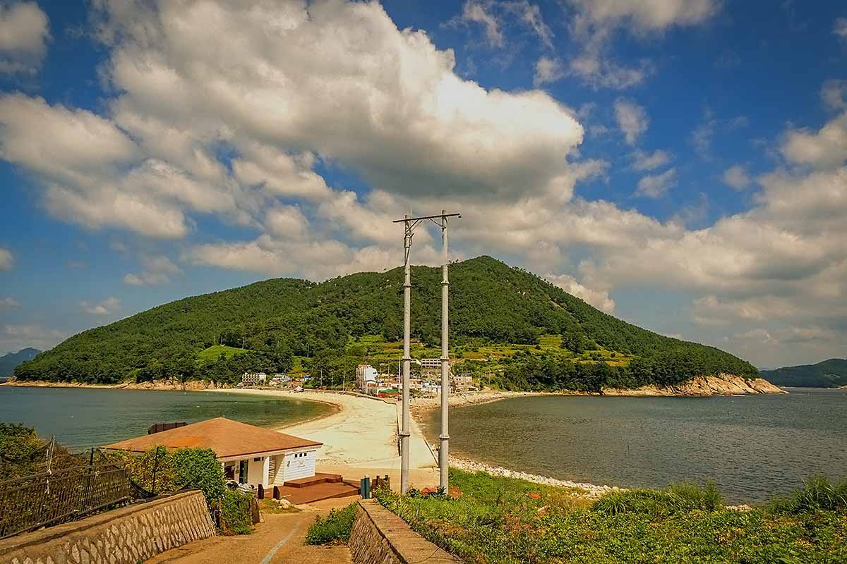 두 개의 섬이 모래사장 길로 연결이 되어 다른 섬과는 확실히 다르고 독특합니다.