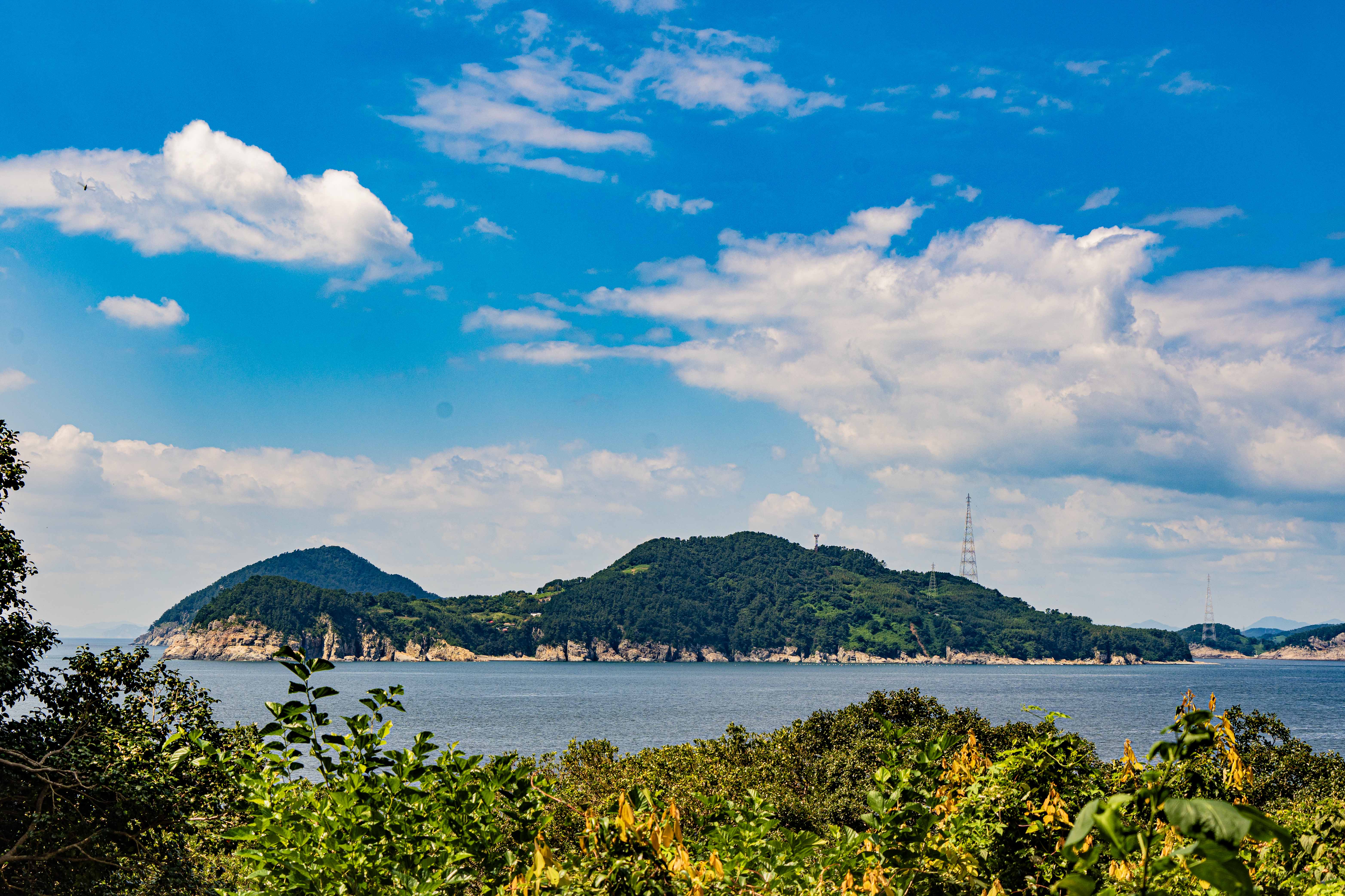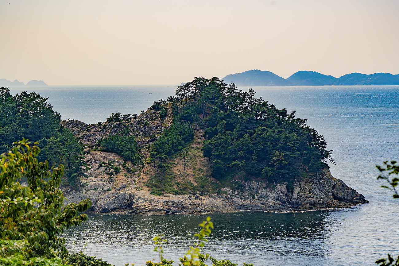 비진도의 푸른 바다와 울창한 산,
