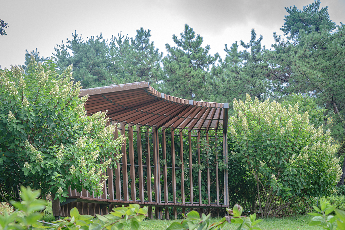 쉼터 벤치에 앉아 찍으면 여유로운 여행자 느낌 연출 가능.