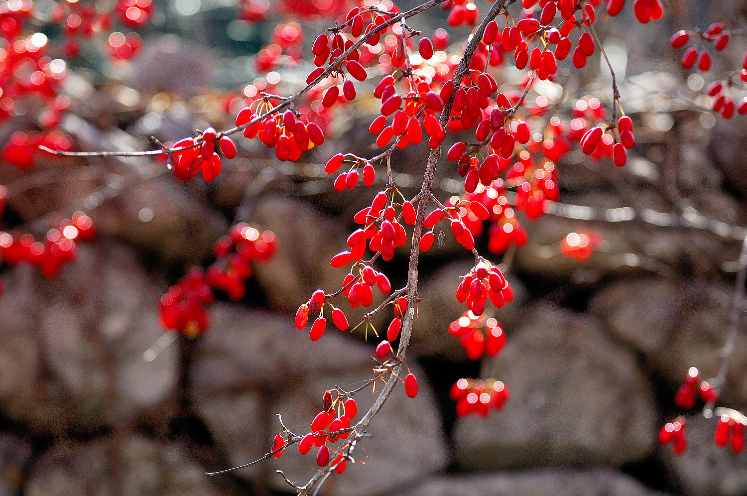 돌담 너머로 붉게타는 산수유 열매 또한