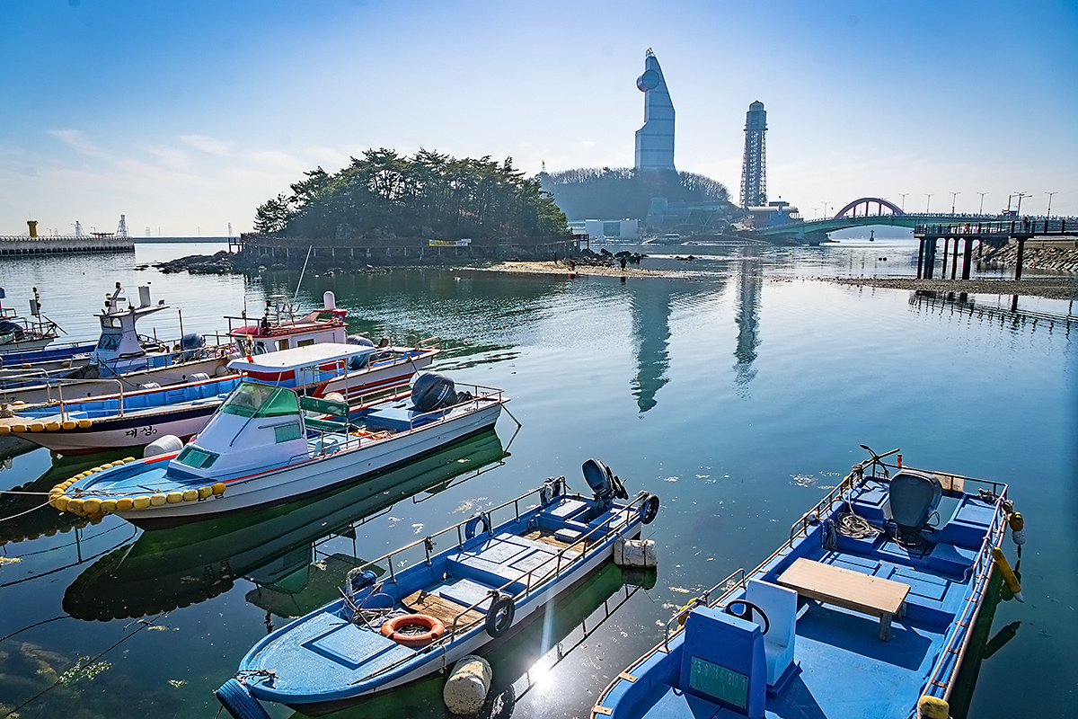 동섬과 해양공원이 한눈에 들어 옵니다.