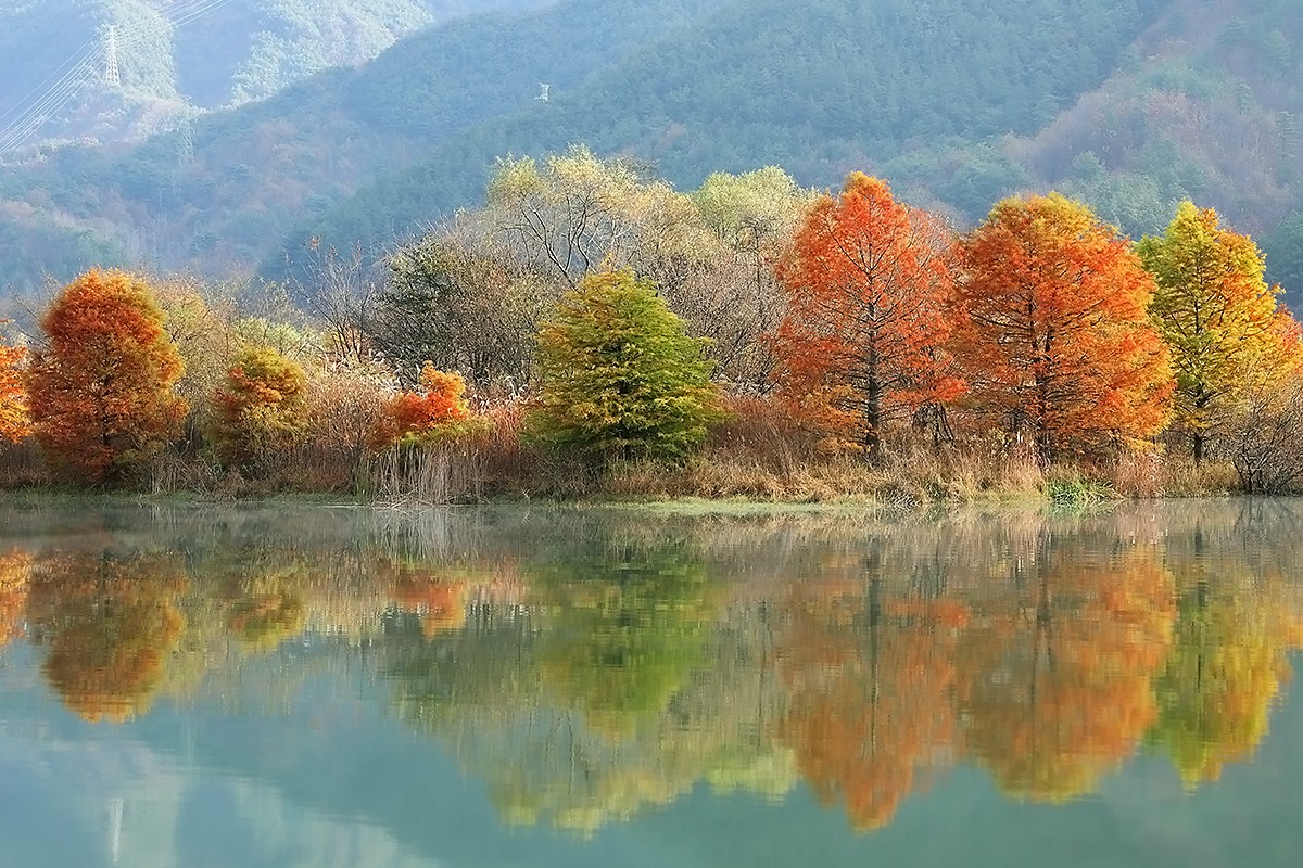 특히 물안개 피며 비친 산과 하늘 숲의 반영은 사진 찍기 좋은 포인트예요.