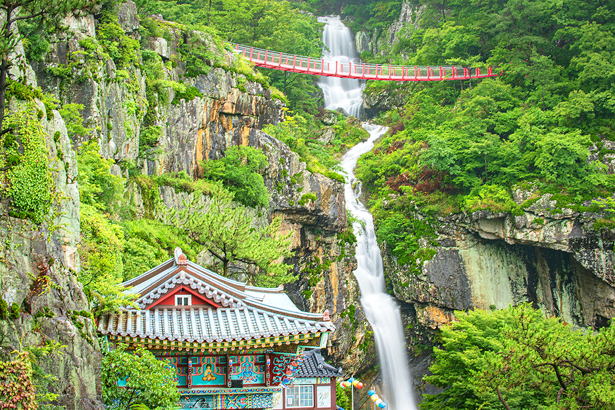 경남 고성군 구절산 폭포암 위로 길이 35미터의 출렁다리가 놓이면서 새로운 명소가 될 전망이다.