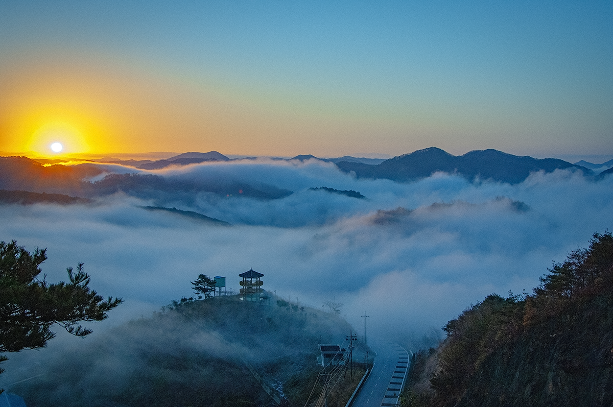골짜기 미다 운무가 가득하고 산그리메만 보이는 그런 날 새벽이었습니다.