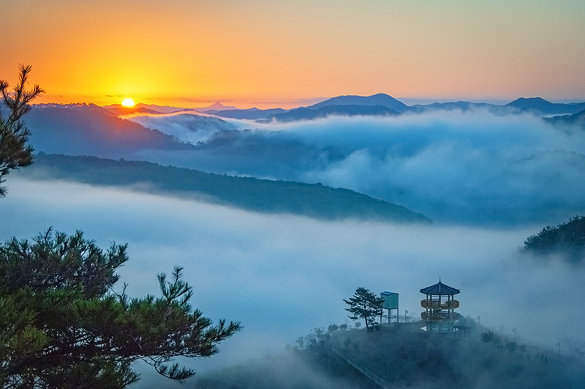 강한 빛을 받은 운무가 환상적인 아름다움을 발하여 줍니다.