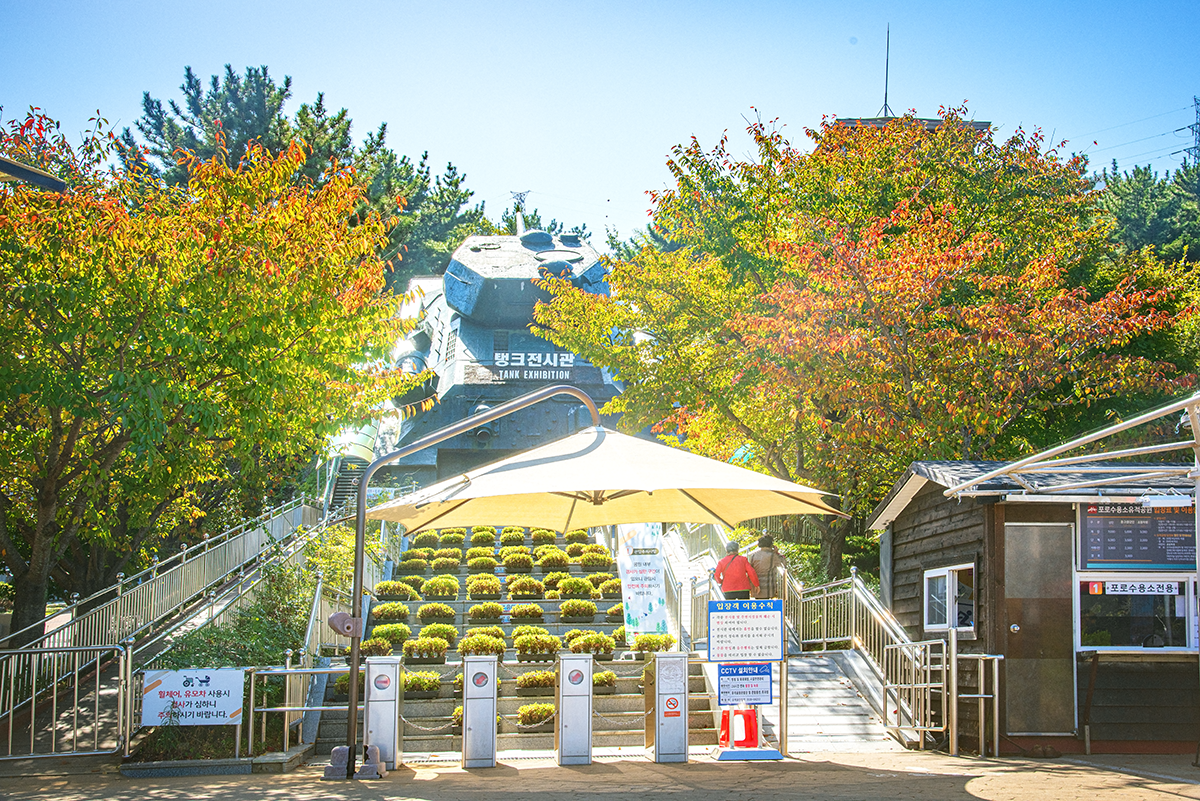 모노레일 상부에 도착하면 한국전쟁 당시의 흔적이 남아 있는