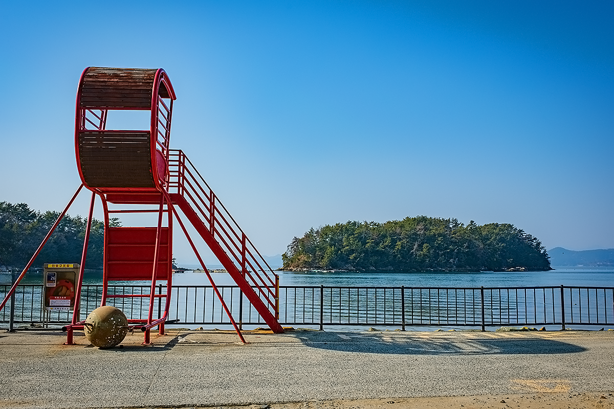 그 특유의 한적한 어촌 분위기와, 멀리 거가대교가 시원하게 보이는 풍경이