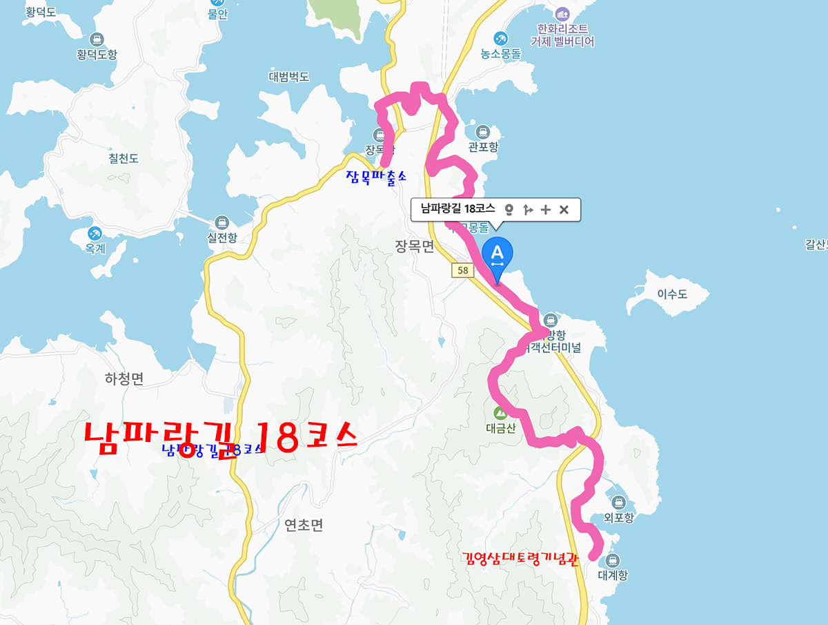 남파랑길 거제 18코스 구간은 거제 장목파출소 앞에서
