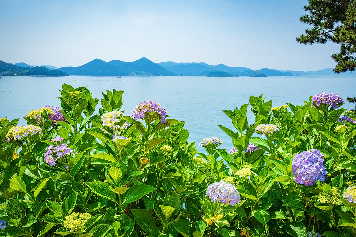 바다를 배경으로 담을 수 있는 수국이 그렇게 흔하지는 않지요.
