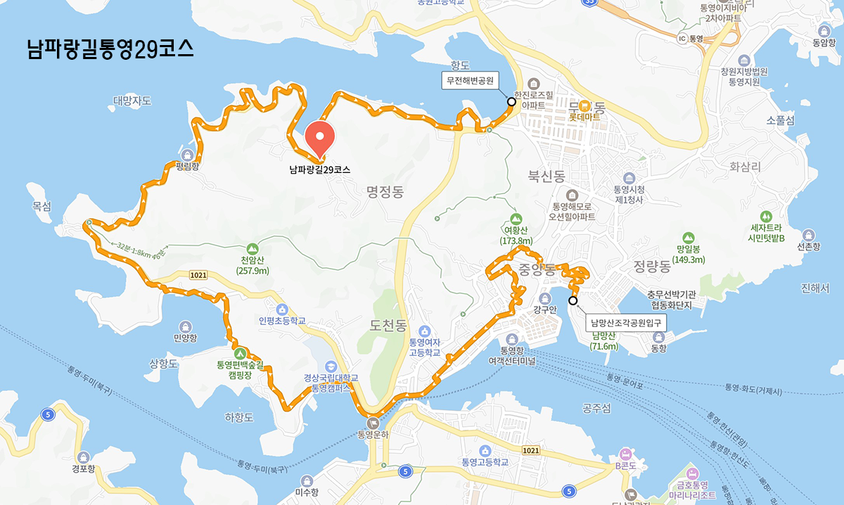 남파랑길 29코스 통영 남망산조각공원 → 무전동 해변공원