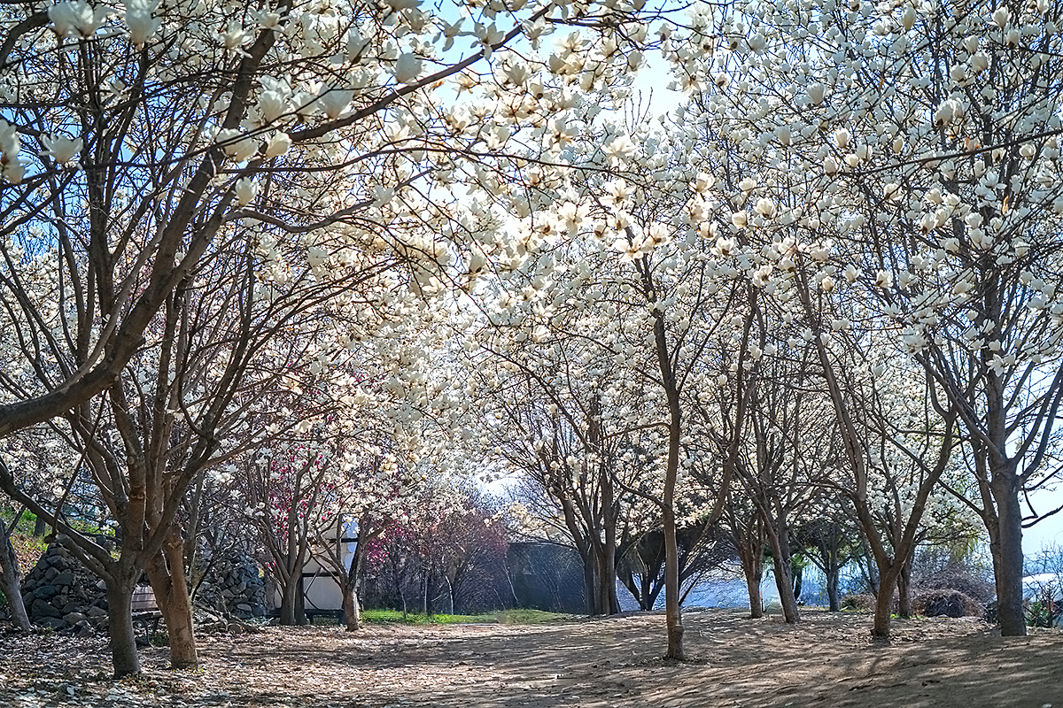 목련숲에 들어서는 순간 계절이 바뀌었다는 걸