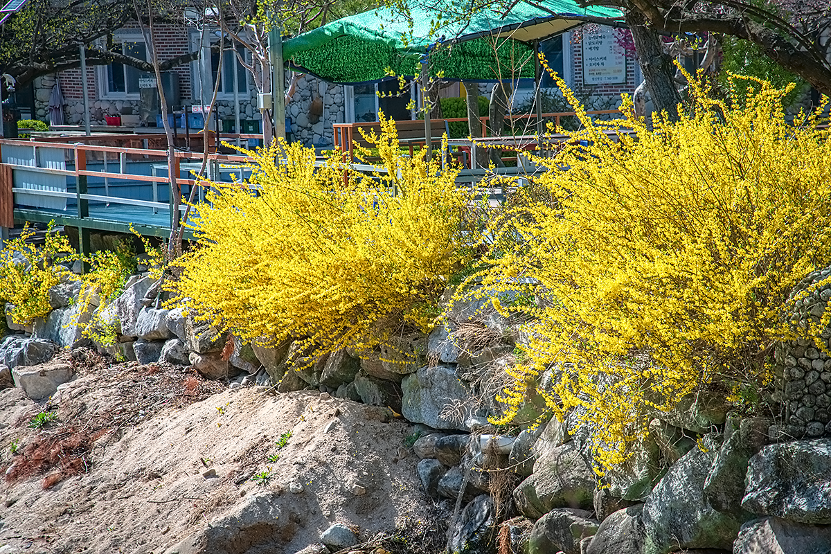 노란 개나리가 활짝 피어