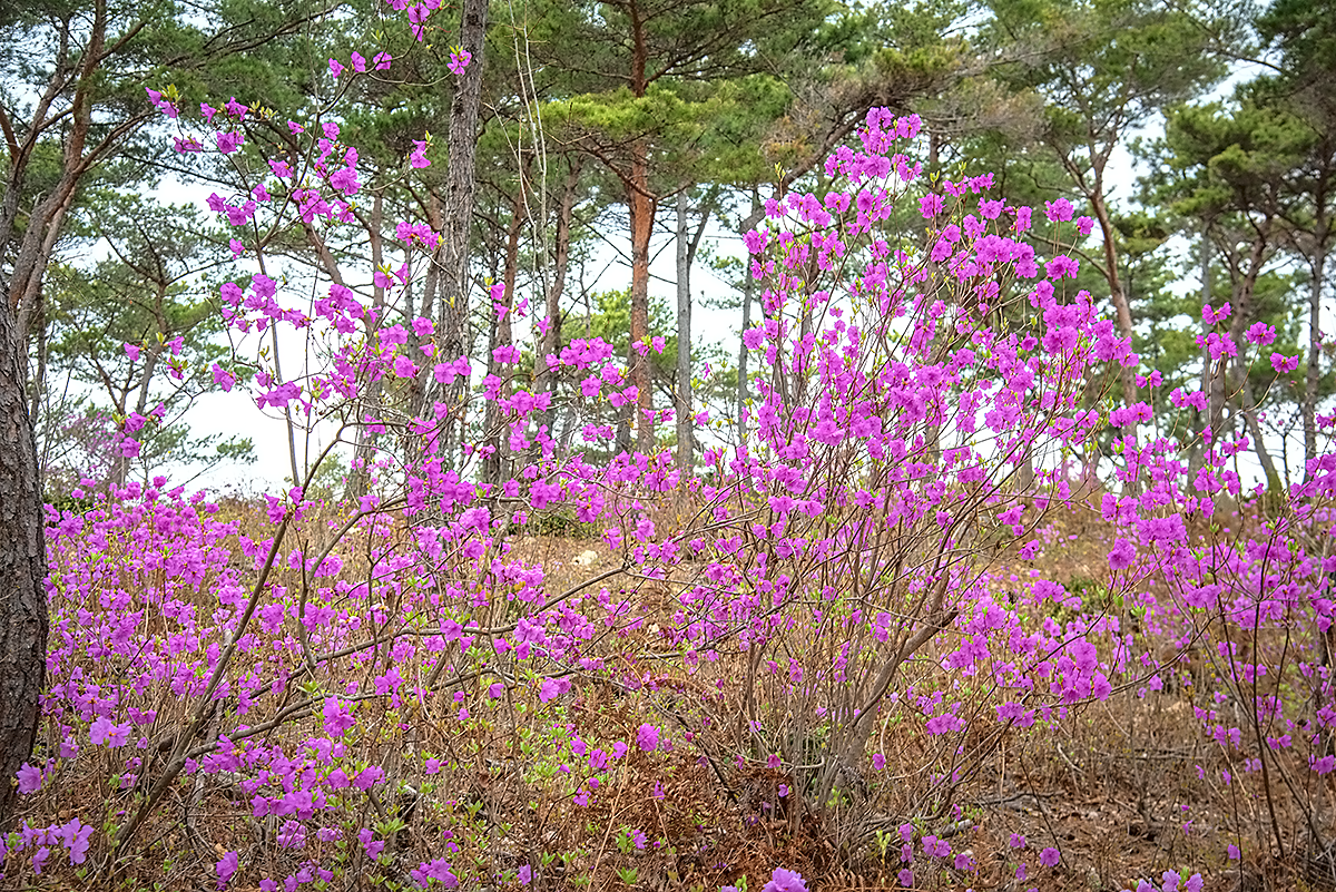- 섬 곳곳에 퍼진 진달래 군락지