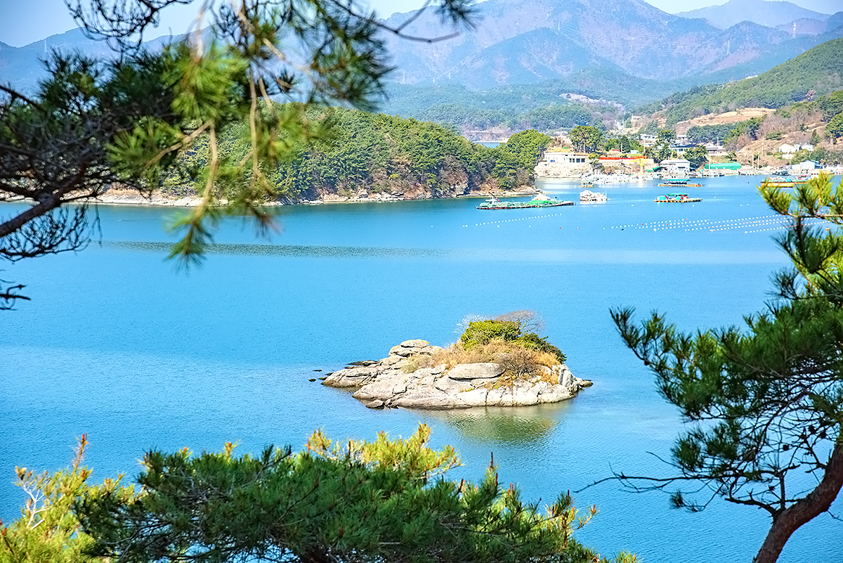 정자에 올라 보면 앞쪽에 있는 상주섬도 보이고
