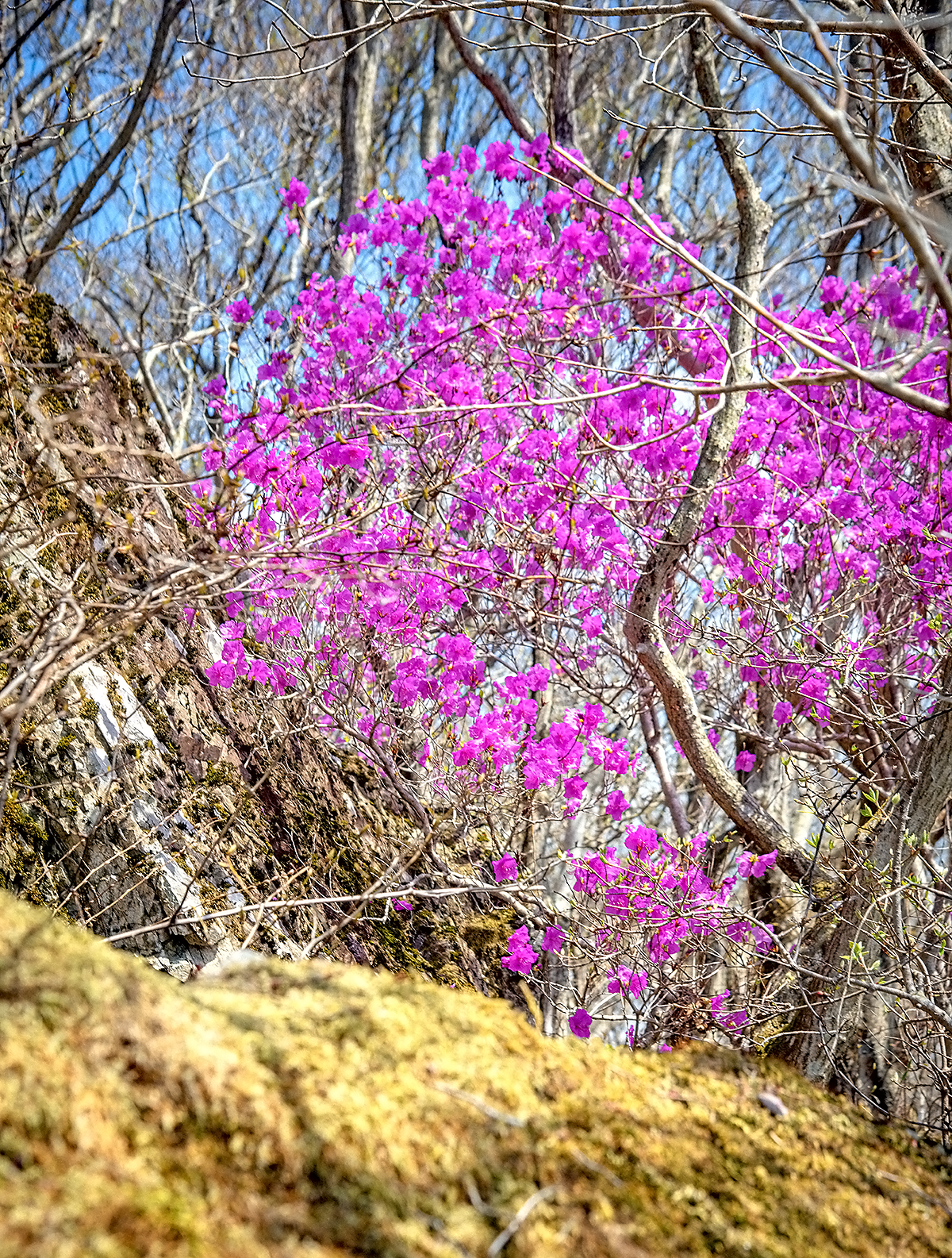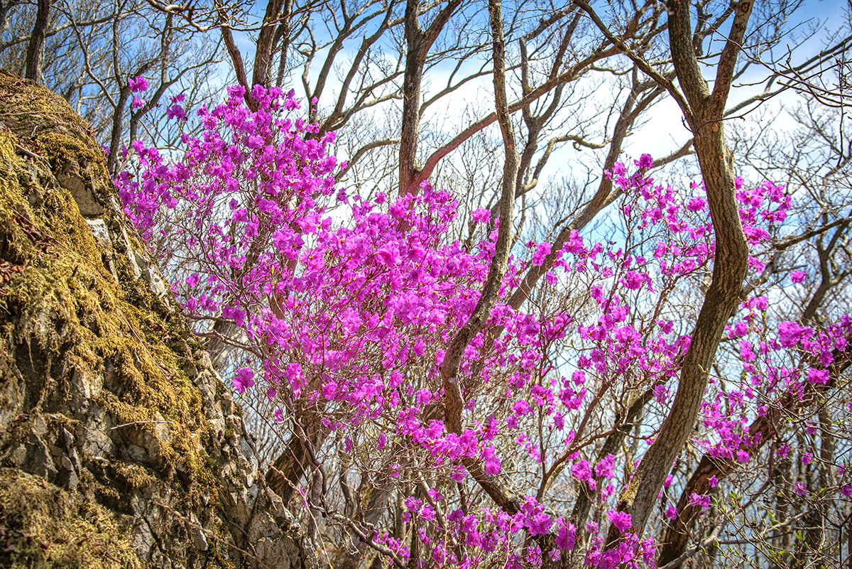 전망대 밑 등산로 주변의 진달래입니다.