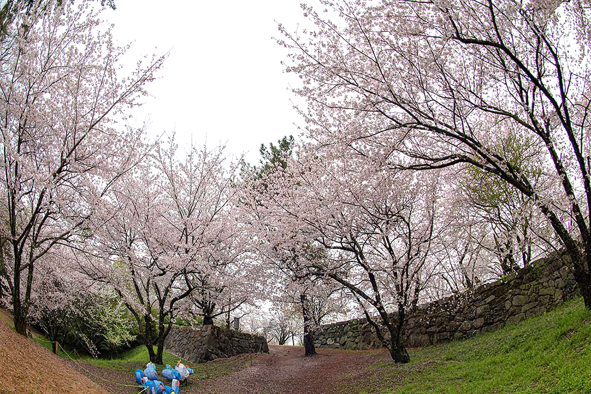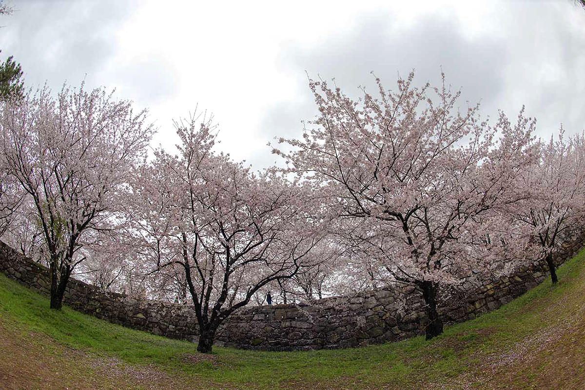 성벽을 따라 일열로 늘어선 벚나무들을